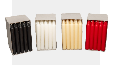 Our popular stick candles available in 11 colour options to suit any decor, theme or festival. 6+/- hour burn time, 17cm long, made from paraffin. A colour for any room or any occasion including our popular white or ivory church candles and red or green Christmas candles. Adding a classic touch of light and colour.
