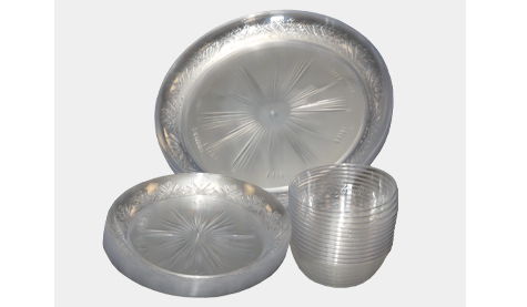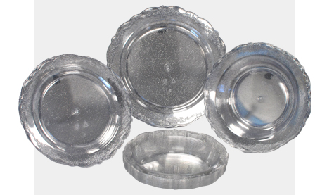 Shop nowRound clear plates and bowls with an elegant, embossed pattern for a classic premium finish. Made from strong sturdy plastic in a timeless design adding class to any table setting.