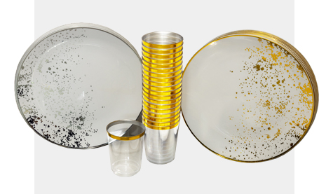 Shop nowAn elegant range of special occasion premium reusable tableware. Plastic plates, bowls, trays and cups designed to impress, for a refined presentation. Choose from a range of colour options of white & silver, clear with silver glimmer, gold sparkle, clear or white square and clear embossed patterned. Popular with caterers, wholesalers and retailers looking for a sophisticated look.
