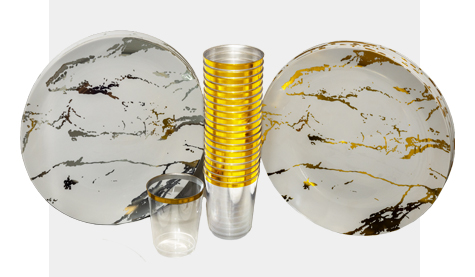 Shop nowA luxurious collection of marble effect plates and bowls with complementing cups. Where design meets elegance for a premium dining experience. Perfect for weddings, anniversaries and upscale events.