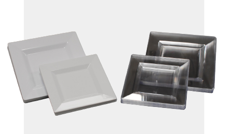 Contemporary elegance for stylish table settings. Modern square plates in white or clear, made from strong sturdy plastic adding a sleek upscale touch to any table.